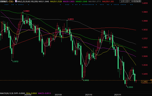 北京时间11月23日15:56,英镑兑美元报1.3402/00