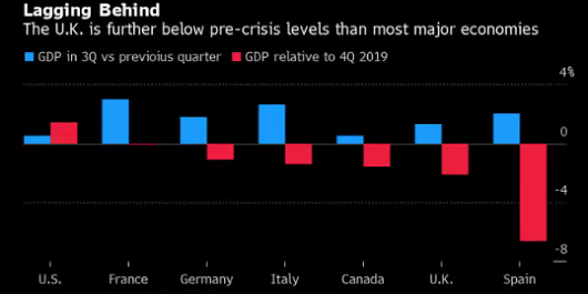 (英国GDP对比疫情前差异较大部分主要经济体更大)