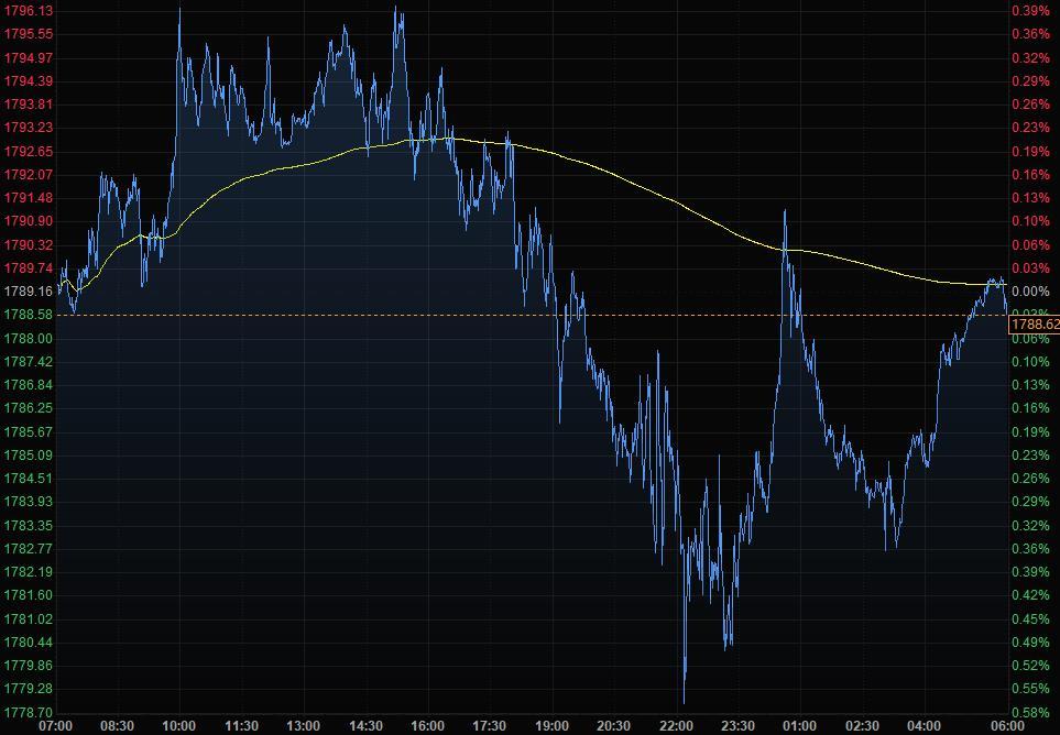 周三现货黄金跌至三周低点,盘中稍早曾跌至11月4日以来的最低水平1778.70美元/盎司;因美国经济数据强劲提振美元和美债收益率升高,市场对美联储早于预期升息的担忧加剧了悲观情绪。