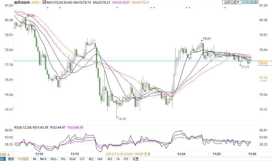 周四(11月25日)布油期货微跌0.03美元,结算价报82.22美元/桶。OPEC及其包括俄罗斯在内盟友组成的OPEC+联盟将于12月1-2日举行会议,制定政策。目前市场聚焦于该联盟对消费国释放油储的反应,原油价格表现相对谨慎。