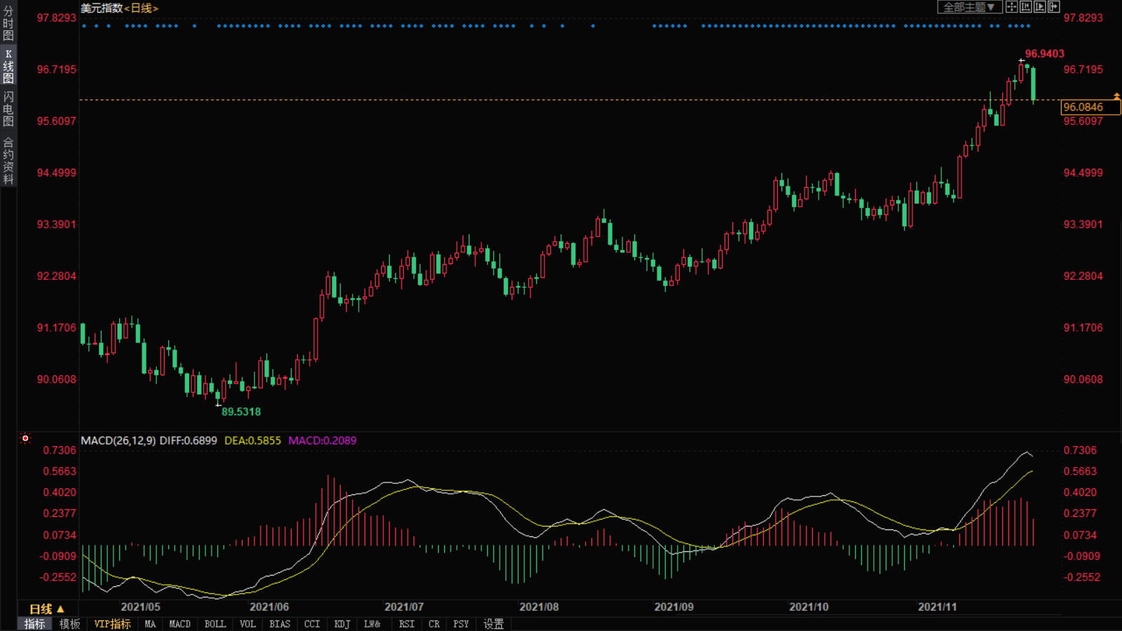 刚刚过去的一周,美元指数震荡上行,美元指数周三涨至16个月新高,此前美联储主席鲍威尔获得提名连任,加强了市场对美国将在2022年升息的预期。但随着周五新毒株来袭,引发全球需求前景的担忧,导致金融市场急转直下,纷纷相继大跌。