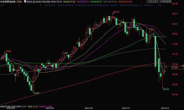 北京时间12月6日19:45,布伦特原油期货价格报71.83美元/桶。