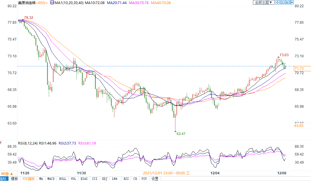 周二(12月7日)布油尾盘上涨3%,报收75.28美元/桶,盘中一度高见76.27。初步数据显示Omicron病例增加迄今尚未使医院不堪重负,而且几乎没有证据显示全球石油消费受到重大打击,油价延续上个交易日继续大幅反弹。
