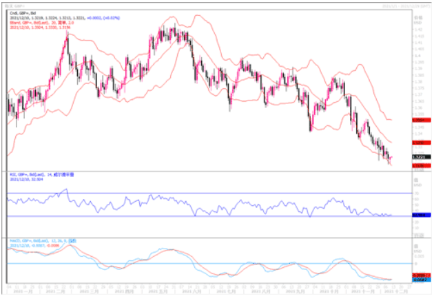 在周三触及一周高位1.1355后,欧元兑美元下滑至1.13下方。美国对欧洲债券收益率的利差再次有利于美元。在明天的美国CPI发布之前,特别是在下周美联储决定之前,令欧元多头颇感不安,高位获利回吐调整风险较为实际。在短期内,因政策前景方面以及甚至在Omicron病毒菌株全面到来之前病例就会激增从而可能会出现进一步的封锁,都对欧元构成一定的不利。短线4小时图上回调明显,若1.1280跌穿,将进一步滑向1.1250。在下周美联储议息会议召开之前,料欧元兑美元向上走的可能性不大。