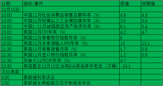 周三关键词:中国经济数据、英国CPI、美国零售销售、EIA、美联储决议