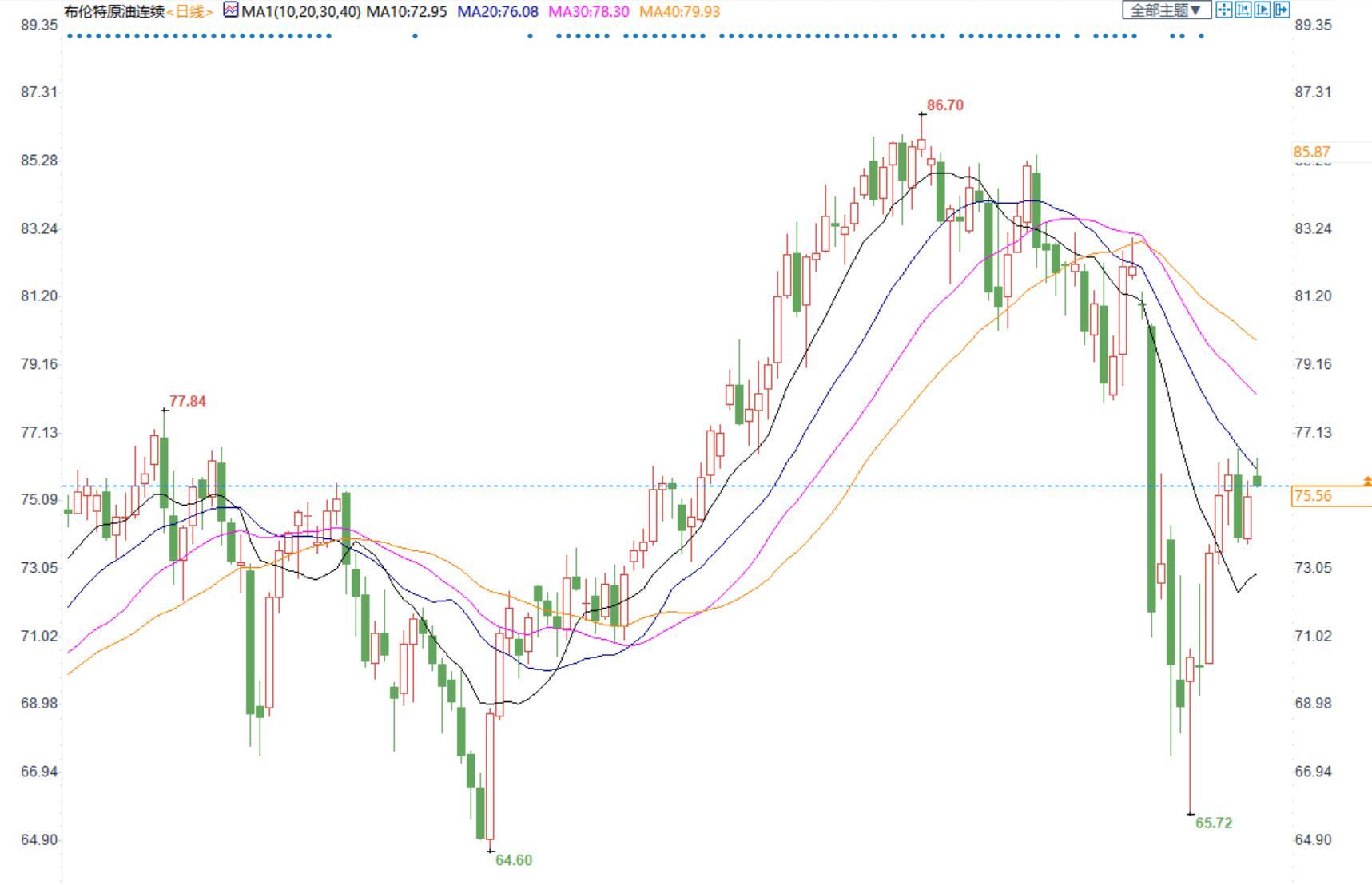 布伦特原油价格小时图