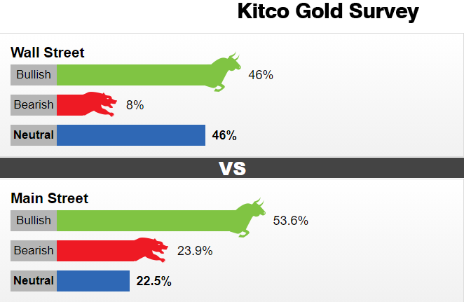 华尔街方面的13位分析师主要分为金价走高和金价横盘,各阵营各占46%。其余8%的人表示价格可能会下降。