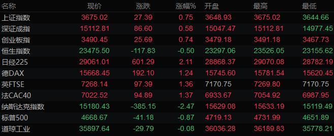 全球主要市场行情一览