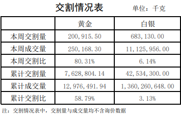 黄金交割比由70.05%升至80.31%,白银交割比由7.01%跌至6.14%。