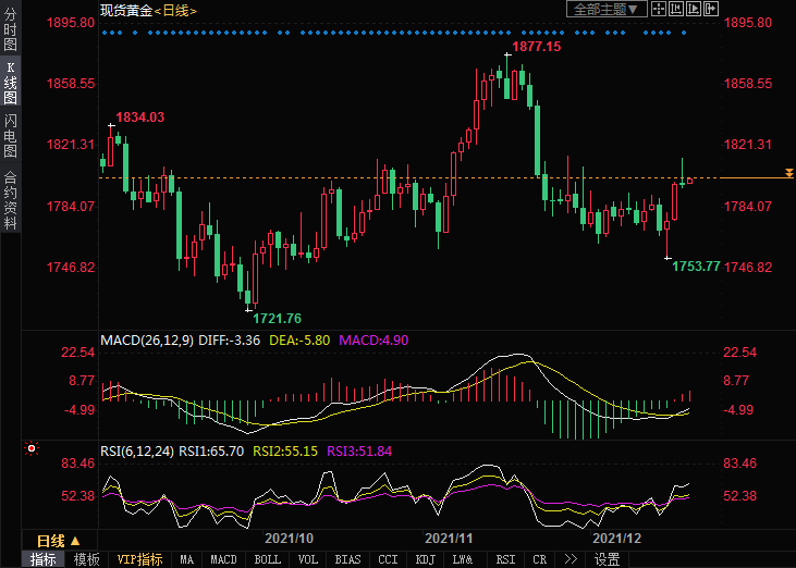 技术面来看,MACD金叉,RSI金叉,金价12月16日突破前期震荡高点,也预示着金价将进一步上涨。