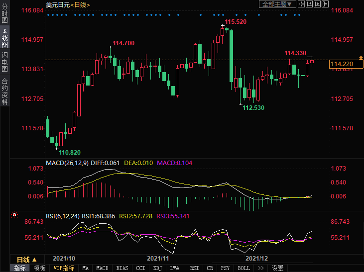 周三(12月22日)美元兑日元突破盘中盘整阶段,在欧洲时段跃升至114.33附近的月度新高,日内市场风险偏好上升,另外日本央行会议纪要偏鸽。