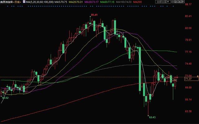 北京时间12月22日19:30,美原油期货价格报71.37美元/桶。