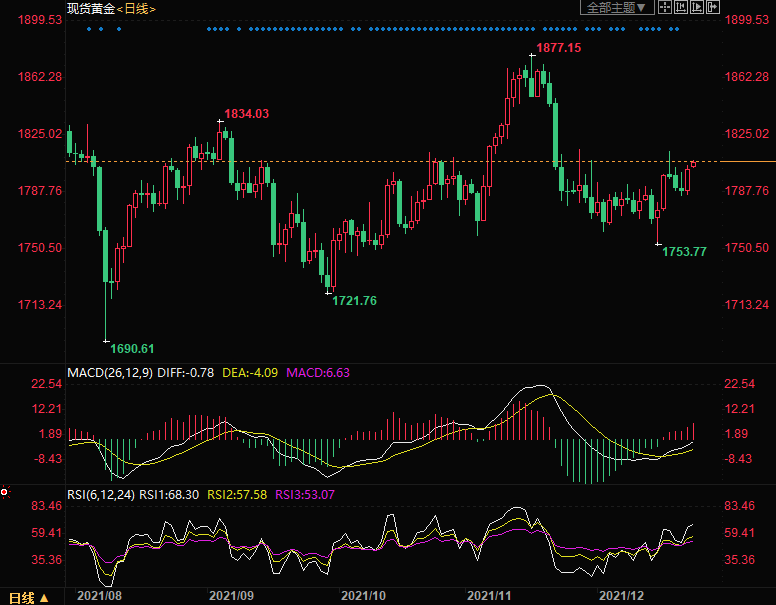 上方阻力关注12月17日高位1814.25,进一步关注8月30日高位1823.31以及9月3日高位1834.03。