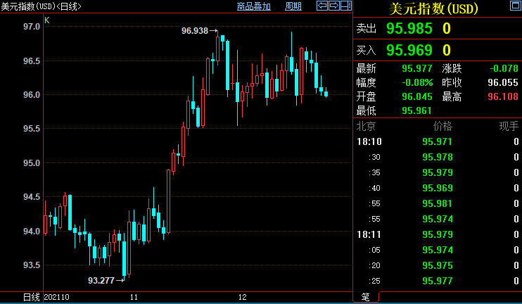 拜登支出计划受挫,挫伤了投资者信心,美元指数回吐上周全部涨势,目前累计下跌逾0.7%,运行在96关口附近。不过美国消费数据强劲,难以动摇美联储加速收紧货币政策的决心,美元后市仍看涨。