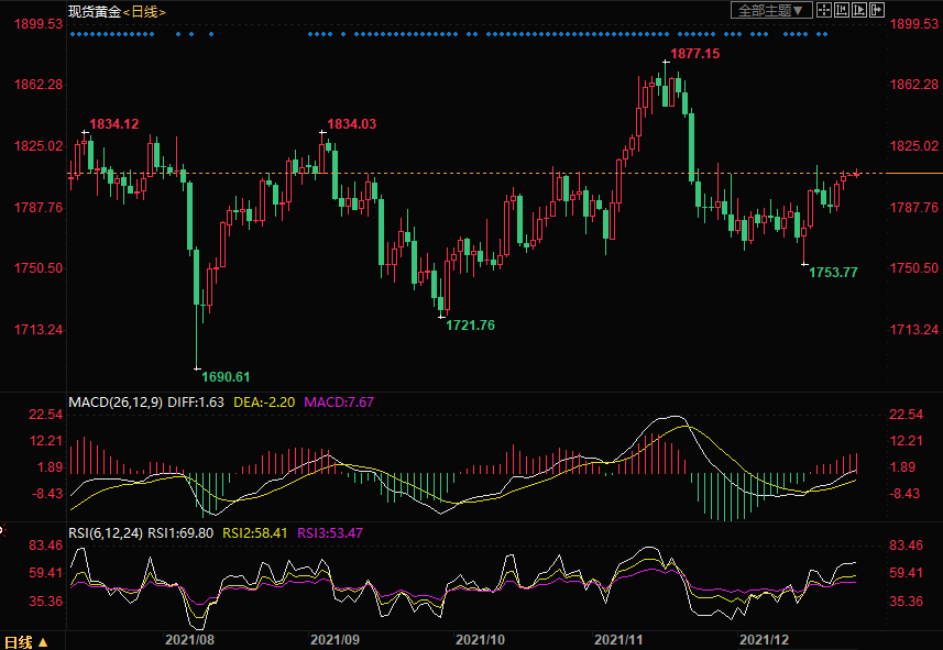 日线级别:金价周一继续交投于1800上方,日内料波动不大。