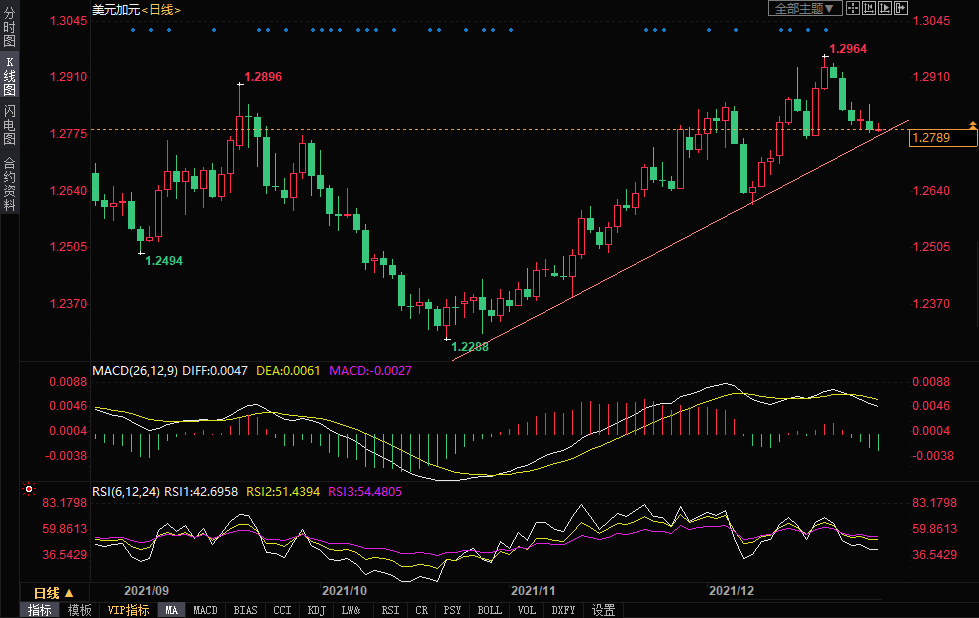 美元兑加元走势分析:关注上升趋势线支撑1.2770