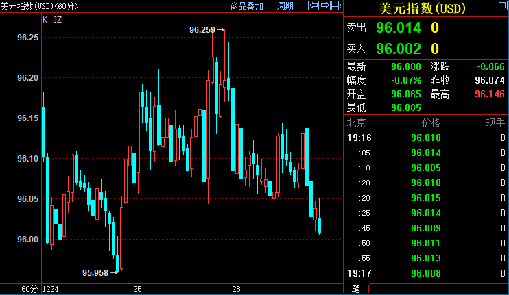 北京时间19:16,现货黄金上涨0.30%至1817.65美元/盎司;COMEX期金主力合约上涨0.55%至1818.7美元/盎司;美元指数下跌0.07%至96.013。