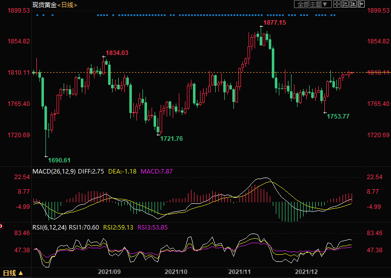 建议投资者观望为主,上方关注11月26日高位1815.56,如果突破有望进一步升至8月30日高位1823.31,再往上阻力关注1834.03。