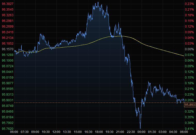 美元指数尾盘跌0.27%,至95.89,在北美市场开盘后转为下跌;美债收益率曲线变陡,10年期国债收益率攀升约6个基点至1.54%。