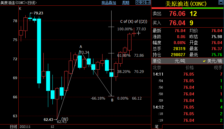 北京时间14:13,NYMEX原油期货上浮0.08%至76.04美元/桶;ICE布伦特原油期货上涨0.14%至78.78美元/桶。