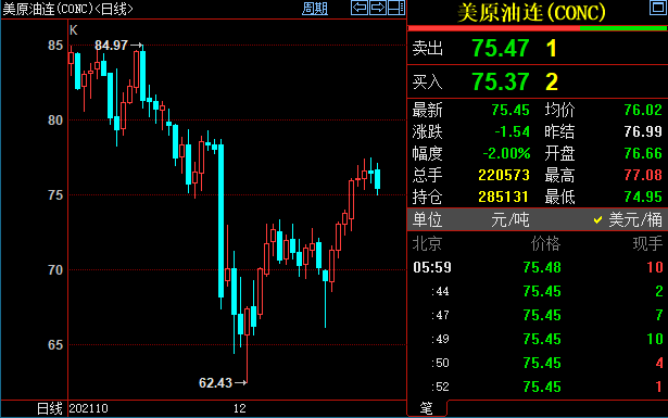 NYMEX原油期货上涨2.29%至75.45美元/桶;ICE布伦特原油期货上涨3.11%至77.94美元/桶。两市均创11月26日以来新高,分别至77.44美元/桶和80.03美元/桶。两市年线分别大涨55.82%和50.70%,分别录得2009年和2016年以来最佳年度表现。