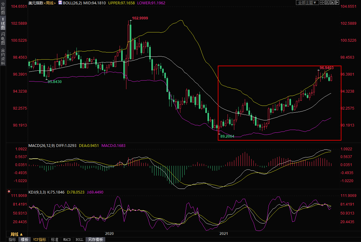 一方面,全球央行整体宽松的货币政策、通胀持续增长和此起彼伏的新冠疫情,给金价提供支撑;另一方面,对全球央行未来逐步收紧货币政策的预期,美联储在2021年底宣布缩减购债、英国央行和新西兰联储的加息,令金价承压,尤其是是美国经济数据在2021年逐步改善,美国股市70次刷新历史记录高点,美元指数震荡走高,对金价压制明显。