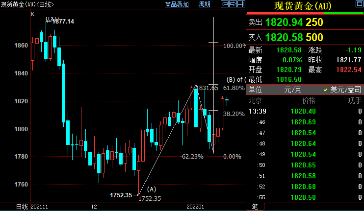 周三(1月12日),国际金价承压,但距离上个交易日创下的高位1823.31美元不远,短线料进一步上摸1831美元。隔夜美联储主席鲍威尔的国会证词不如预期鹰派,激励金价上涨。交易员将注意力集中在美国通胀数据上,以寻找利率线索。
