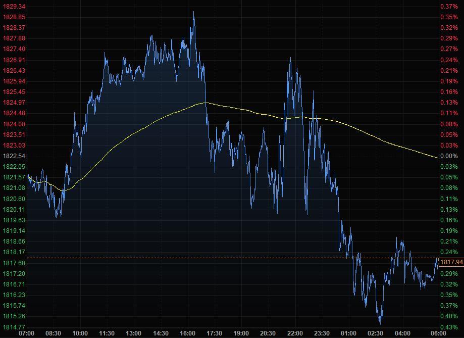 现货黄金上周五下跌,收报1817.94美元/盎司,受累于美国升息前景和美元走强推动美债收益率上扬;指标美国10年期美债收益率走强,而美元指数一度上涨0.4%,令海外买家购买黄金的成本更高。