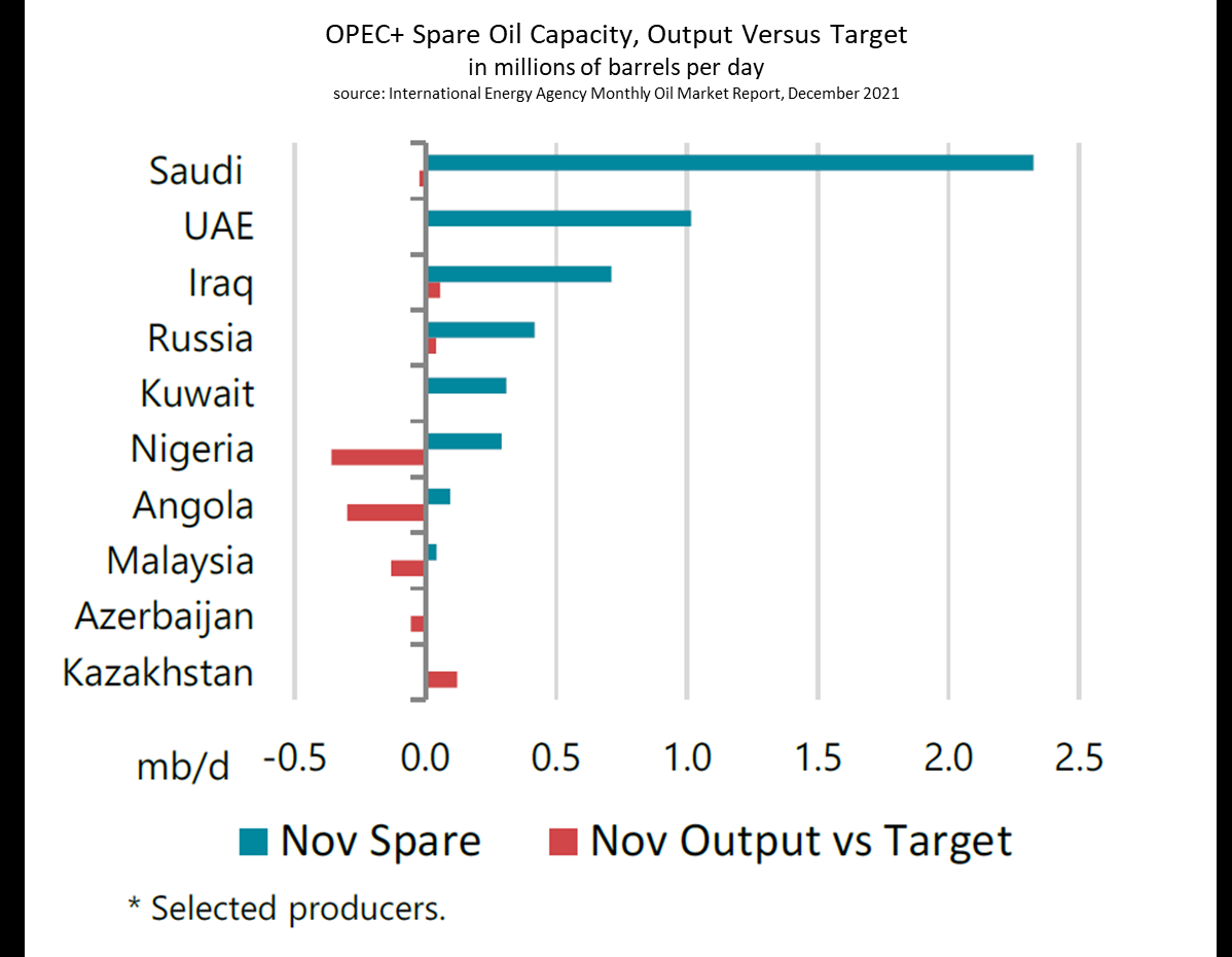 OPEC+有几个国家确实有能力增产。要让这些石油流入市场,可能需要作出决定,将产量配额从表现不佳的国家重新分配出去,但这不是一项容易的政治任务。