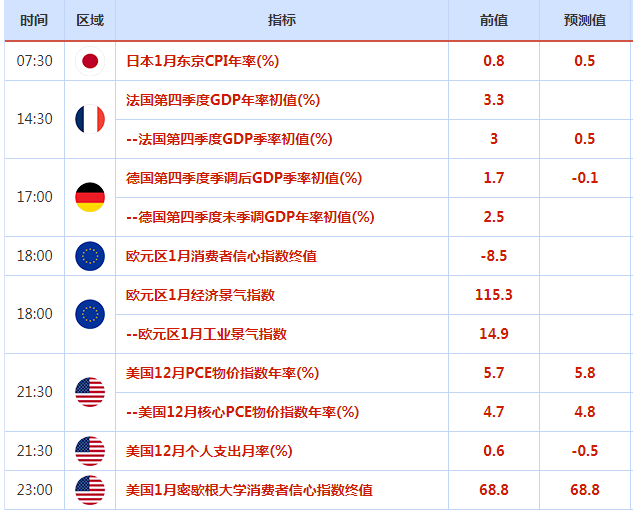 周五(1月28日)关键词:法国4季度GDP、德国四季度GDP、美国PCE数据