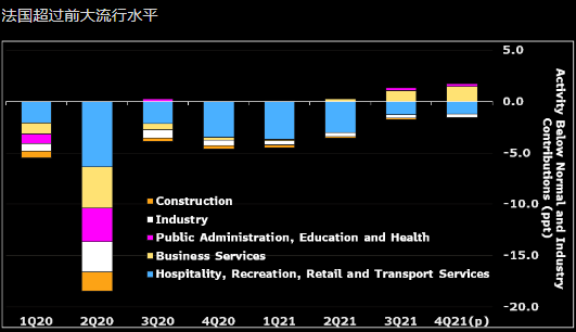 工业生产仍然受到供应限制的影响,分析师不认为工业对法国第四季度的增长做出巨大贡献。建筑活动本季度可能略有增长,部分得益于经济复苏计划的资金支持。
