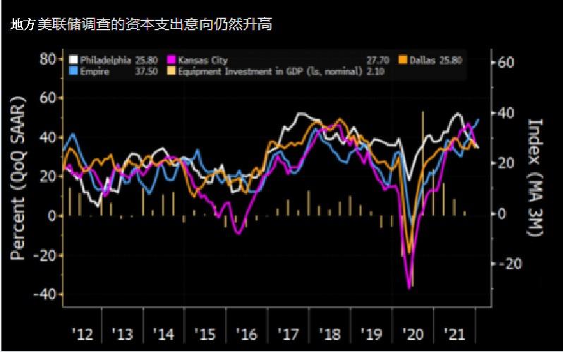 企业仍然表示,他们预计未来几个季度将增加投资,地方美联储的地区调查显示资本支出构成强劲。
