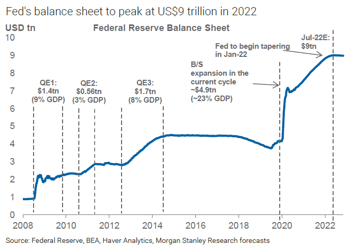 美国银行预计美联储第一次加息将在3月份发生,在接下来的8个季度里,每季度都加息25个基点。该行现在预计美联储将在6月会议上宣布缩表,可能出现提前到5月的风险。