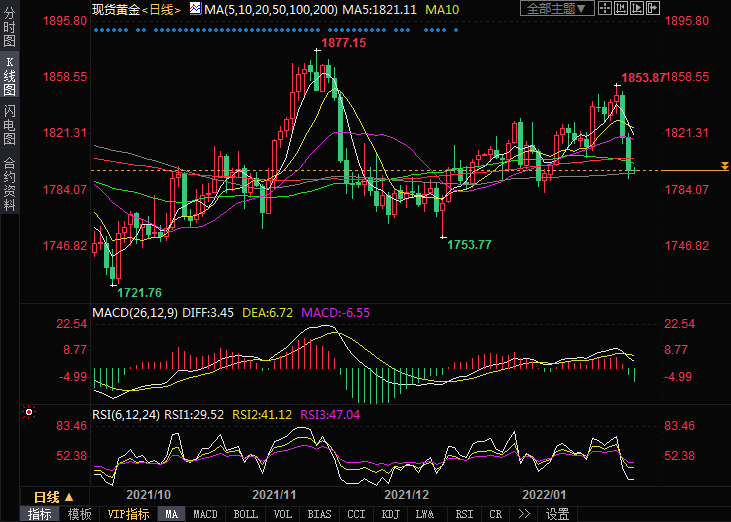 周五(1月28日)现货黄金持稳于1800下方,短线金价空头强势,建议投资者继续逢高做空。