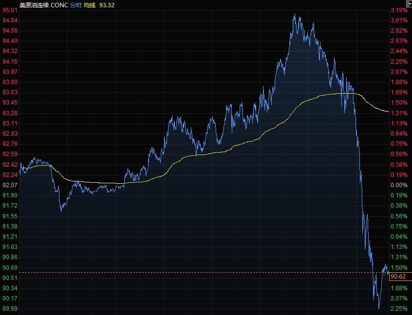 油价冲高回落,美油尾盘下跌1.57%,报90.62美元/桶,此前伊朗最高核谈判代表在推特上表示各方接近达成协议,可能为美国解除对伊制裁铺平道路。WTI原油期货在大宗商品市场收盘后下跌逾3美元,触及90美元关口。