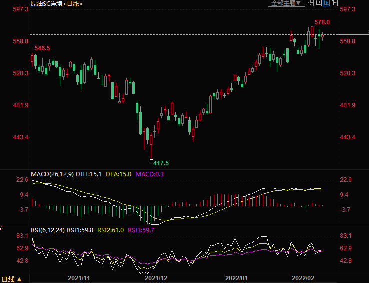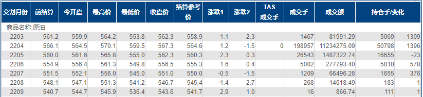 上海原油价格上涨0.21%,主力合约2204终盘收于567.3元/桶,涨1.2元/桶。