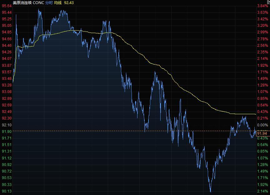 商品收盘方面,COMEX 4月黄金期货收跌2.0%,报1887.60美元/盎司。WTI 4月原油期货收跌1.22美元,跌幅1.31%,报91.59美元/桶;布伦特4月原油期货收跌1.15美元,跌幅1.16%,报97.83美元/桶。