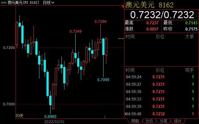 西太平洋银行分析师在一份报告中说:“大宗商品题材仍受到良好支撑,而且我们正处于矿商分红季,这意味着我们可能会在0.72美元附近继续区间波动。”