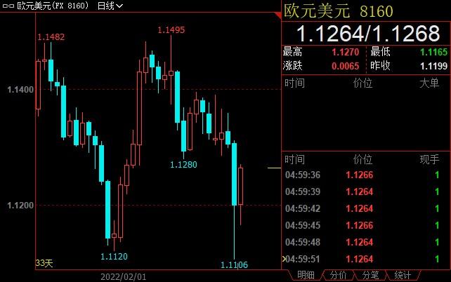 在天然气价格飙升和乌克兰紧张局势升级的情况下,欧元受到避险情绪上升的冲击,兑美元汇率本周收跌0.54%至1.1264,并创2020年6月1日以来新低1.1106。