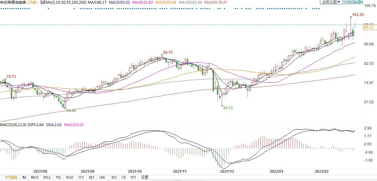 (布伦特原油主力合约日线图)