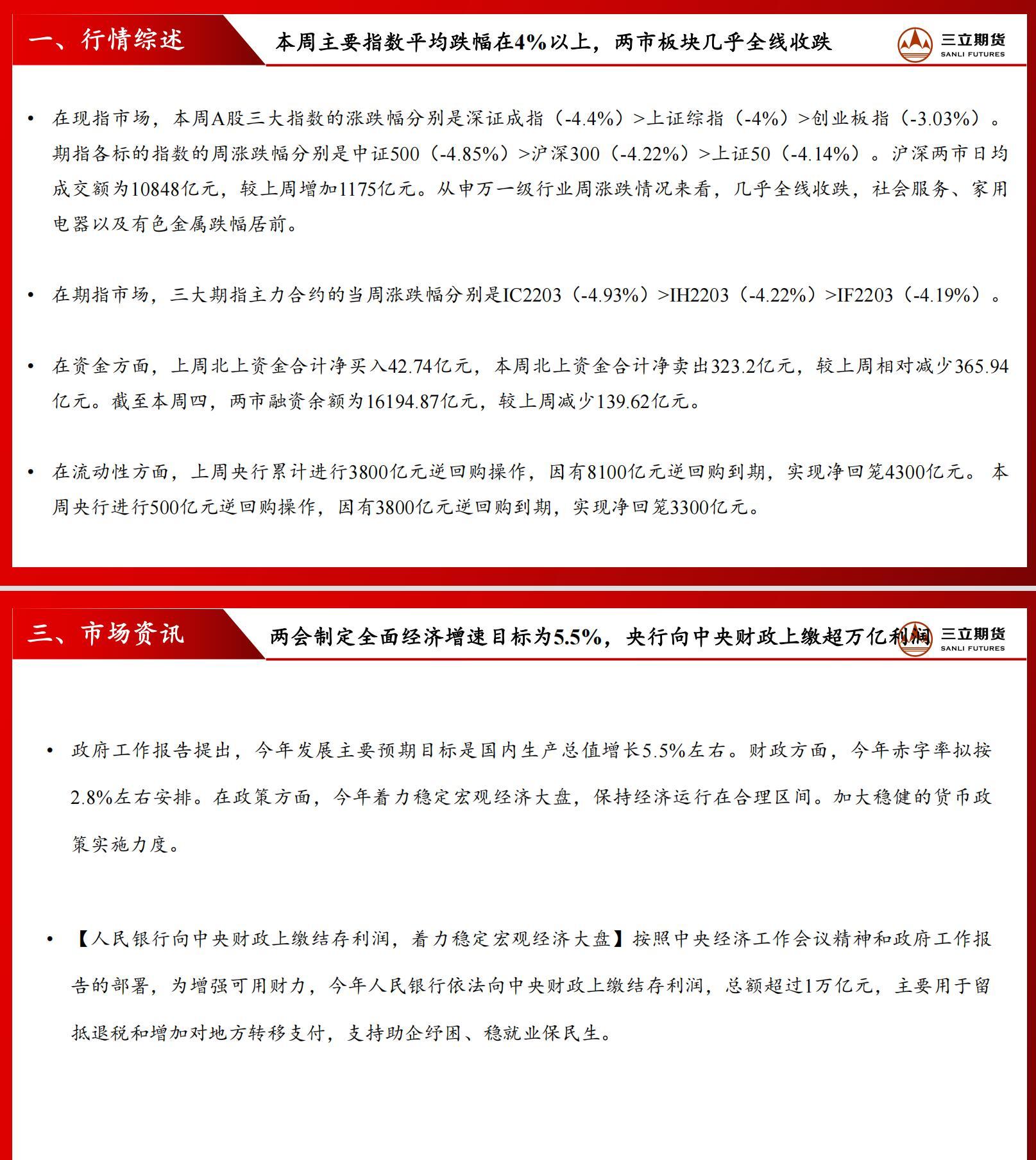? 在期指市场,三大期指主力合约的当周涨跌幅分别是IC2203(-4.93%)>IH2203(-4.22%)>IF2203(-4.19%)。