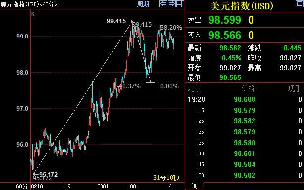 美元指数处于自97.70点开启的上行iii浪,后市料升破38.2%目标位99.32点。iii浪是自95.172开启的上行(iii)浪的子浪。(iii)浪则是自89.206开启上行((i))浪的子浪。