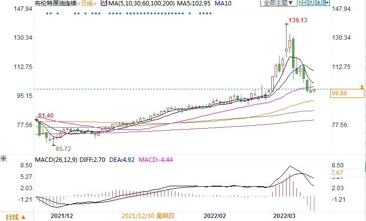 北京时间3月17日11:30 布伦特原油连续 报每桶99.86美元