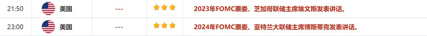此外,投资者还需关注芝加哥联储主席埃文斯,亚特兰大联储主席博斯蒂克发表的讲话。