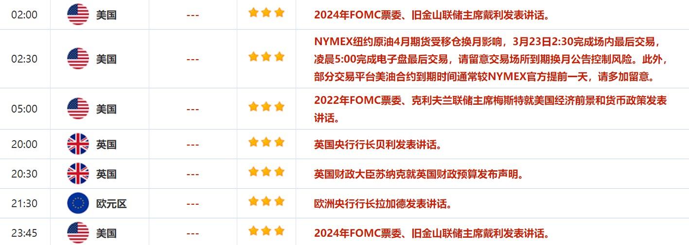 ②周二(3月22日)关键词:英国3月CBI工业订单差值,美联储鲍威尔,欧洲央行副行长金多斯,纽约联储主席威廉姆斯