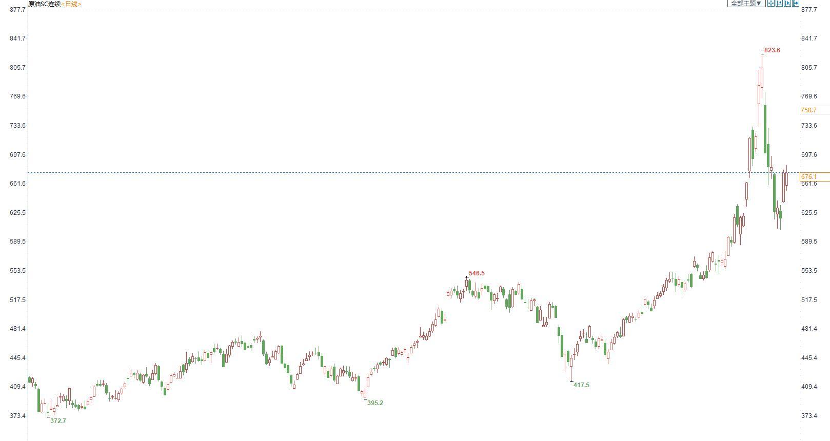 (INE原油日线图)