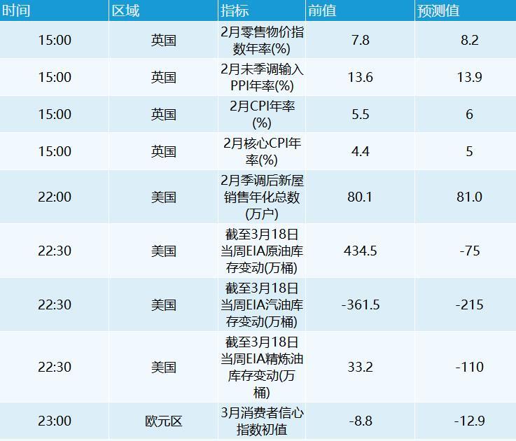 英镑兑美元涨0.73%至1.3261,英国国债收益率走高,欧元兑英镑走弱;英国财政大臣Rishi Sunak的预算声明和周三的通胀数据成为关注焦点。