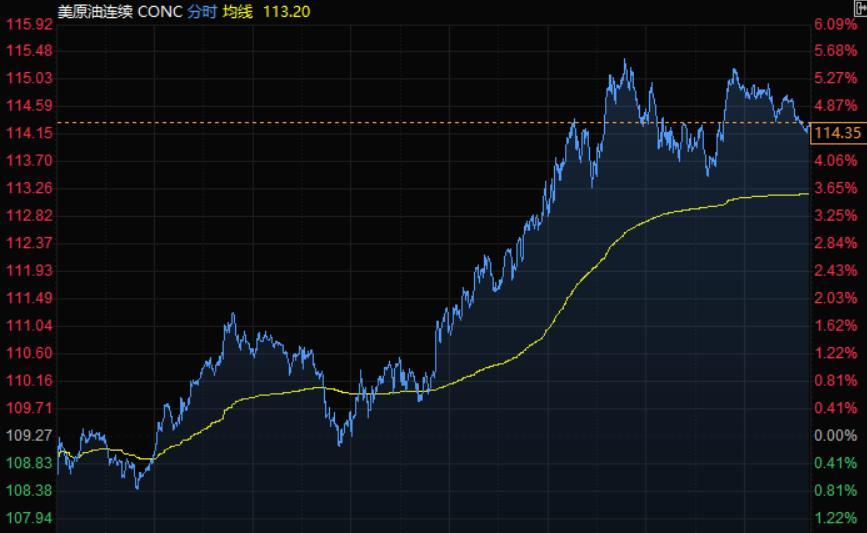 美油上涨逾5美元,结算价接近115美元/桶,因EIA报告显示美国上周原油库存下降,而风暴破坏黑海一个重要出口码头也导致供应风险加剧。
