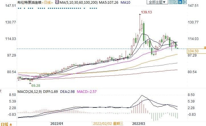 北京时间4月1日12:06 布伦特原油连续 报每桶104.50美元