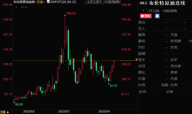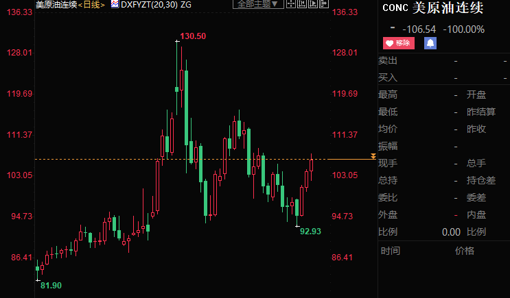 油市周五(4月15日)恰逢耶稣受难日休市,本周提前一天闭市。NYMEX原油收涨8.83%至106.54美元/桶,ICE布伦特原油收涨9.04%至111.66美元/桶。两市分别创3月31日以来新高107.64美元/桶和3月28日以来新高112.39美元/桶。